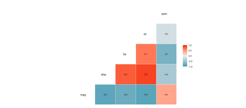 select(mpg, disp, hp, wt, qsec, vs, am) |>